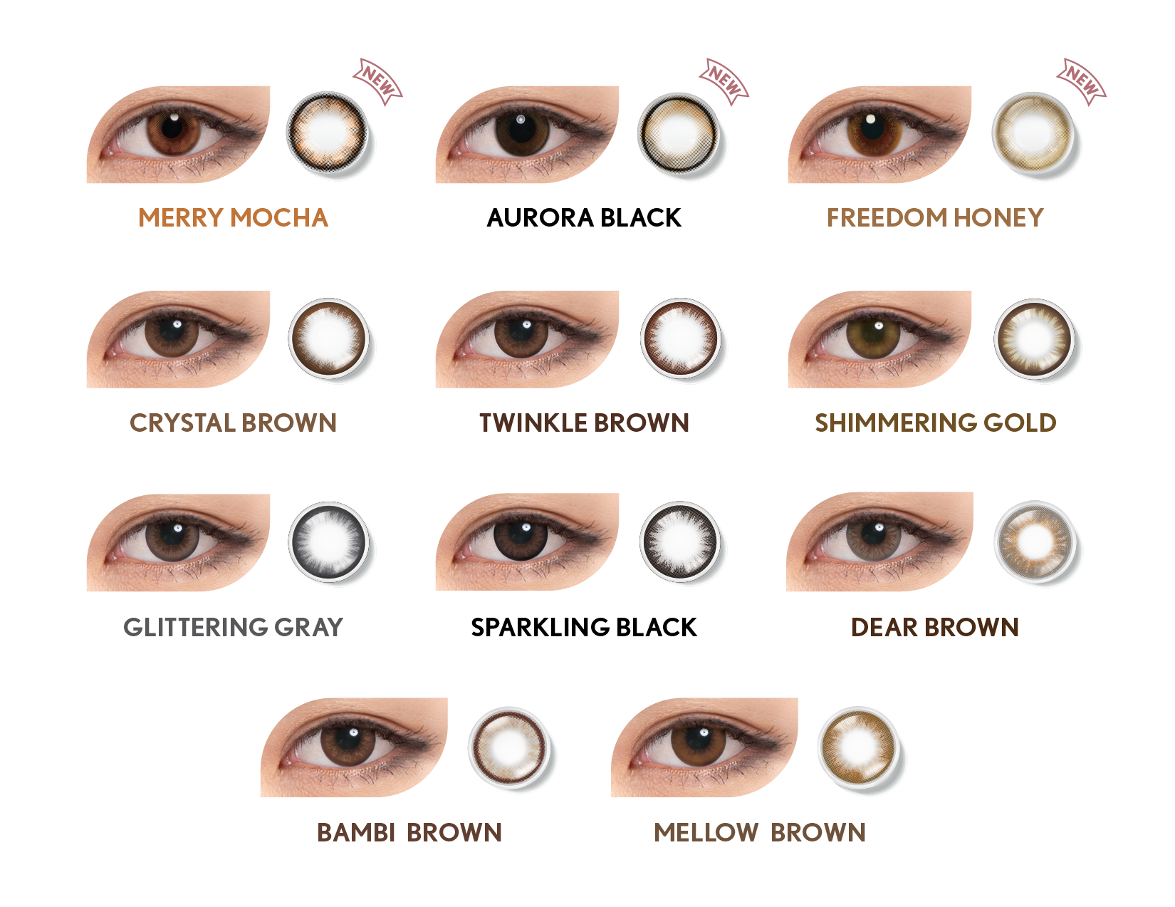 Grace series: Crystal Brown, Twinkle Brown, Sparkling Black, Glittering Grey and Shimmery Gold.